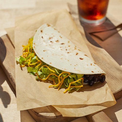 A warm flour tortilla filled with refried beans, Red Sauce, diced onions, and shredded cheddar cheese. Item is lacto-ovo, allowing for dairy & egg consumption. Preparation methods may lead to cross contact with meat. See ta.co for full details.